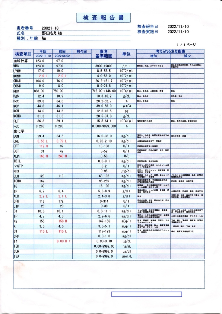 昨年の11月10日に、甲状腺機能亢進症のもえちゃんを病院に連れて行ったのですが、