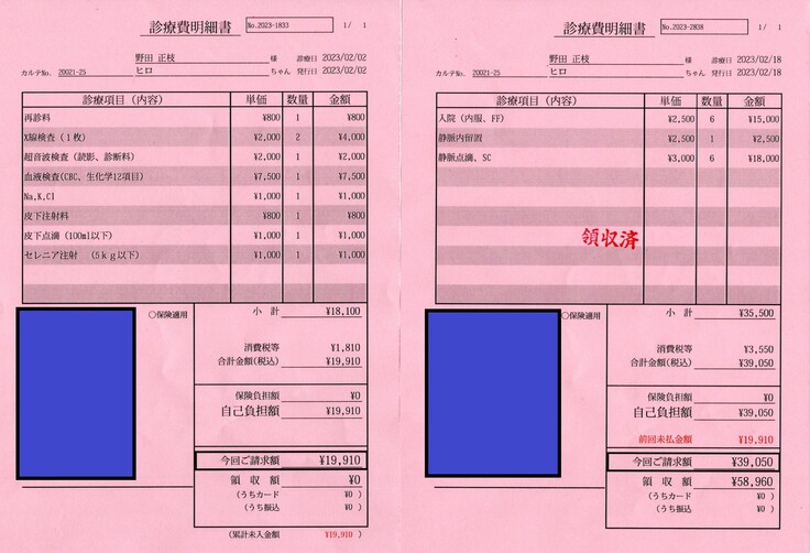 1月の通院からも下痢が止まらず、2月2日に血液検査他いろいろ検査をして、