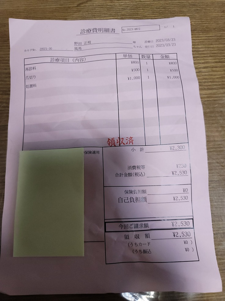3月23日 風馬くんの右爪から出欠に気が付いて見たところ、
