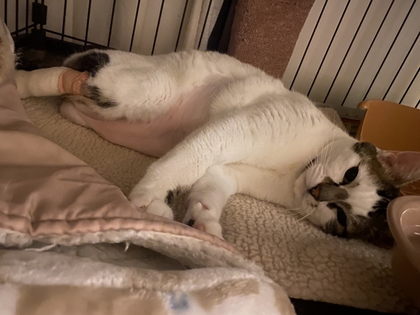 遊びすぎて腹を出して横たわってます。笑