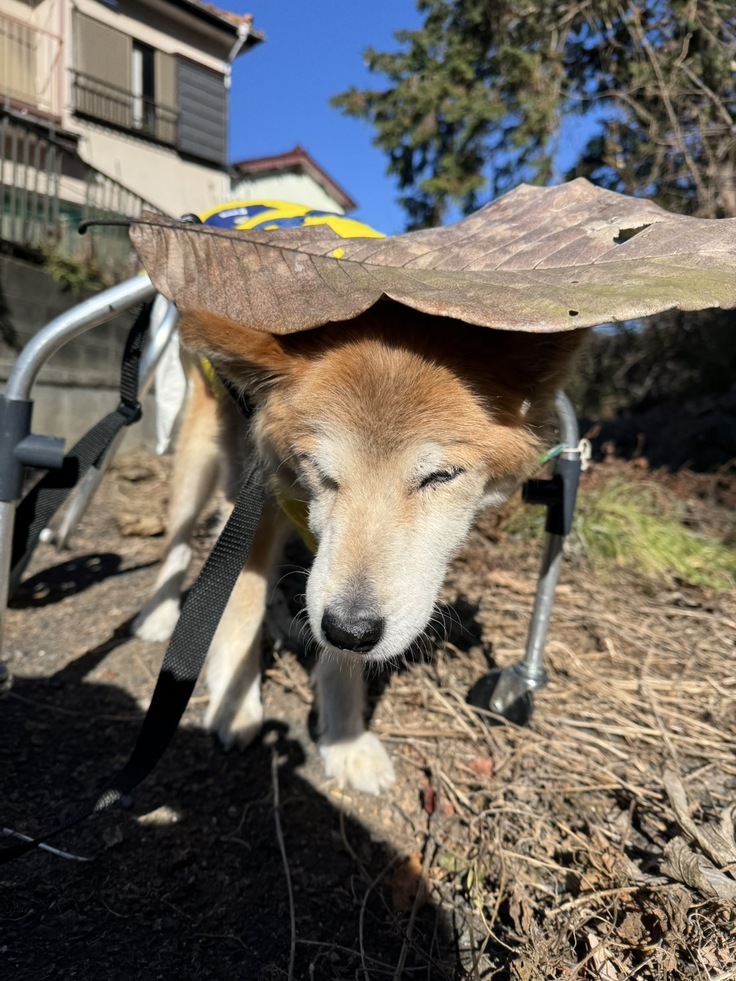 そこでそばにあった葉っぱを見つけて帽子がわりにしたようですよ🍃