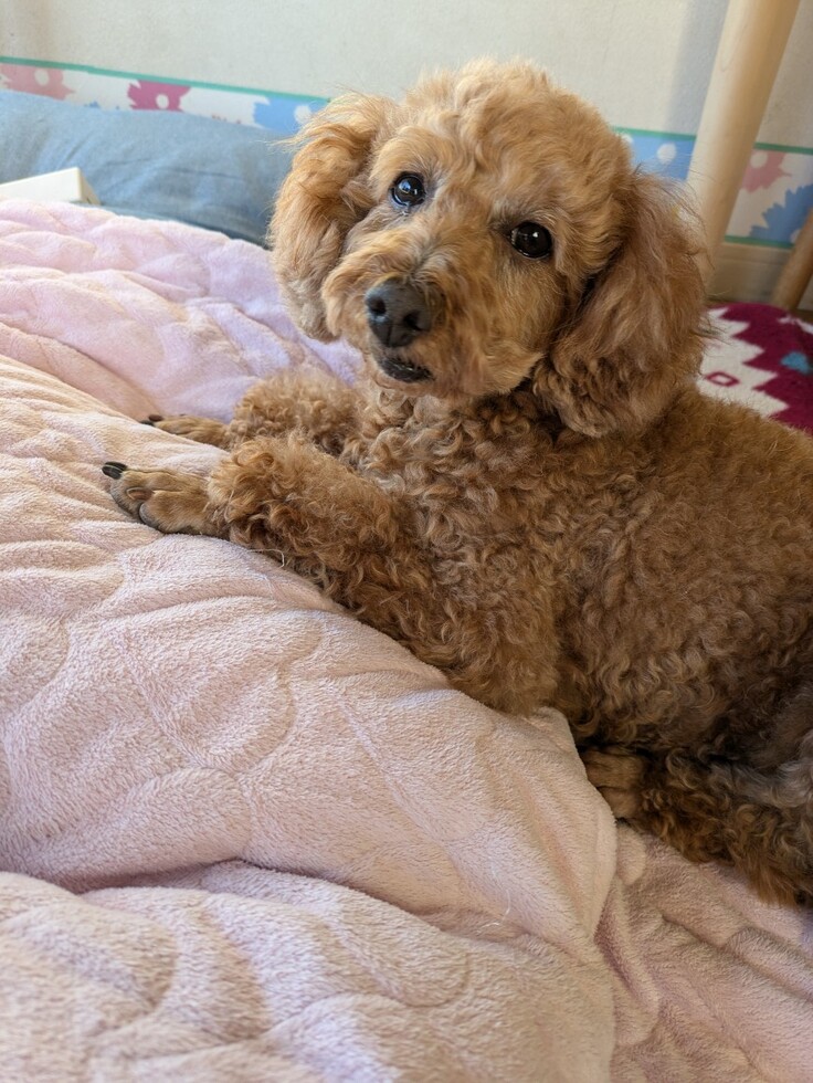 ちょっぴり怖がりさんな女の子でしたが、新しいご家族さまの元では安心しきっている様子!