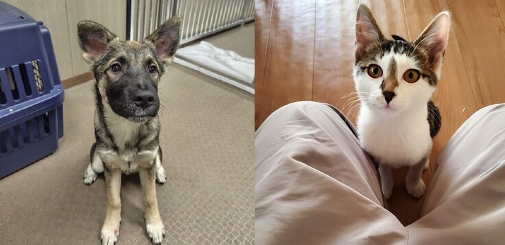 保護当初は寂しさからかよく鳴いていた いなほくん(写真左)