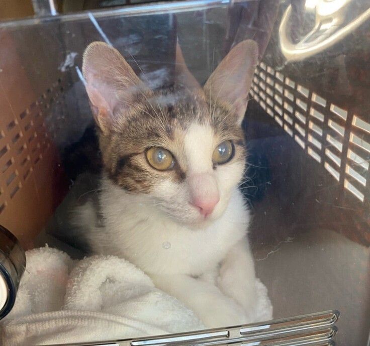 しっぽ村で数日保護をし、商店街のお店の方のおうちへお迎え頂くことになりました😊