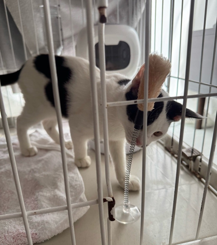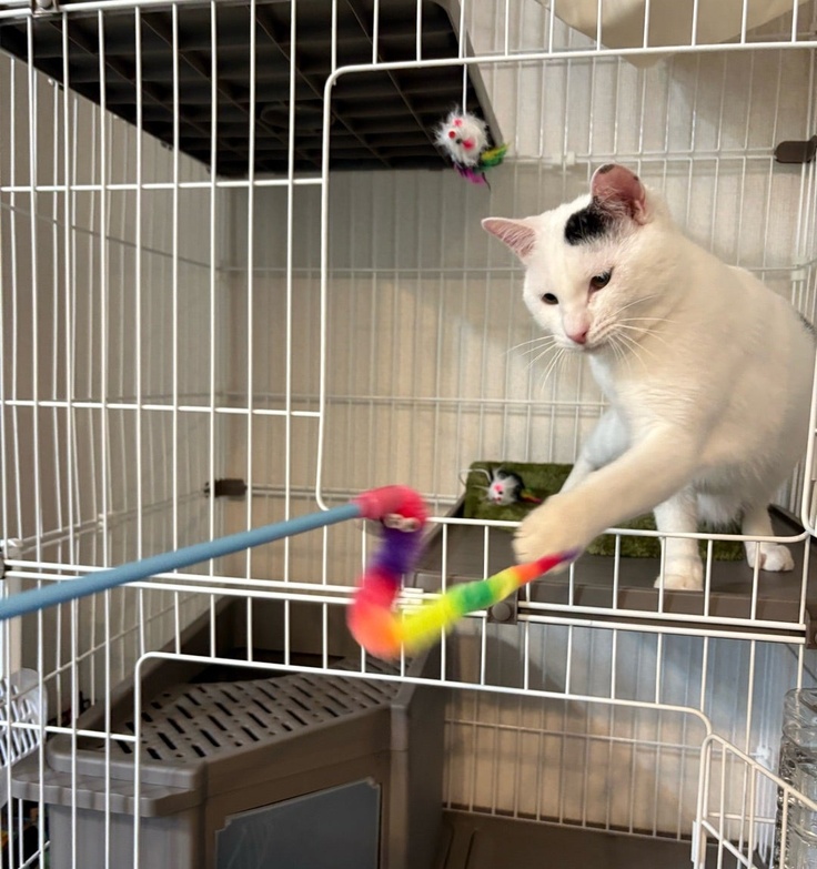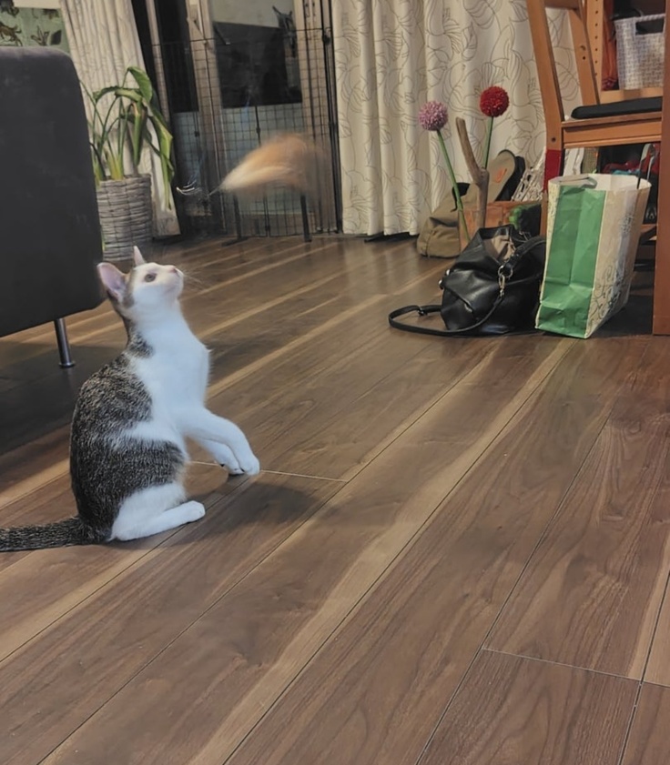 まだ少し人のことが怖いようですが、好奇心旺盛でおもちゃ遊びも大好き!