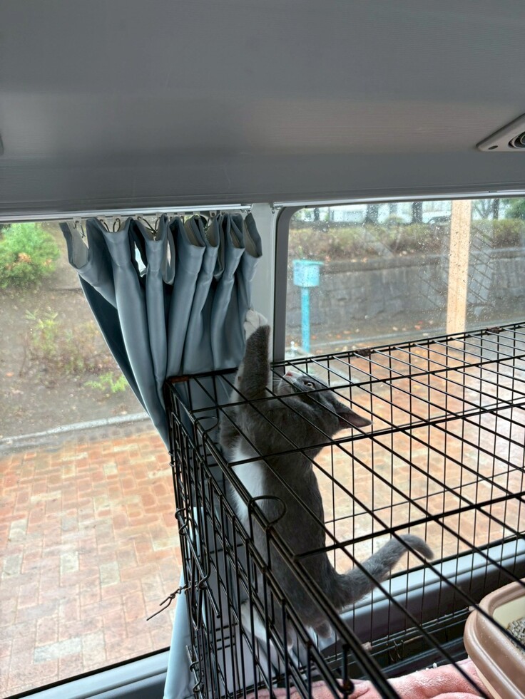 猫ちゃんたちはバスの中でのお披露目となりましたが、