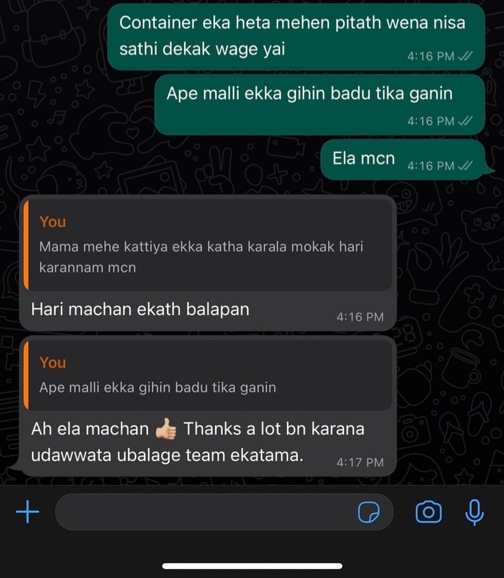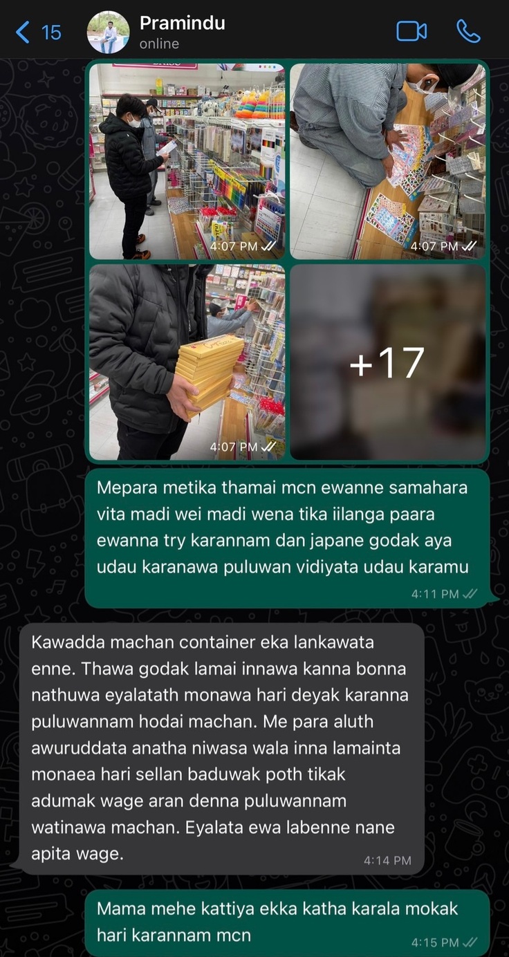 郵便局で20キロ以下の荷物を1つスリランカに送るのに約10,000円ほどかかりますが、送料を極力安く抑えるため、仲の良いスリランカ人の友達のコンテナに載せてもらうこともあります。