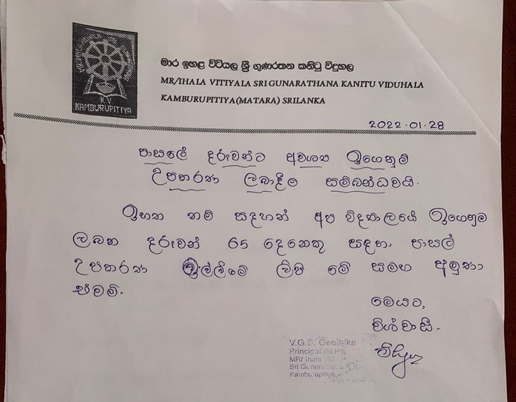 [今回の支援先の一つになる学校の校長先生からのお手紙]