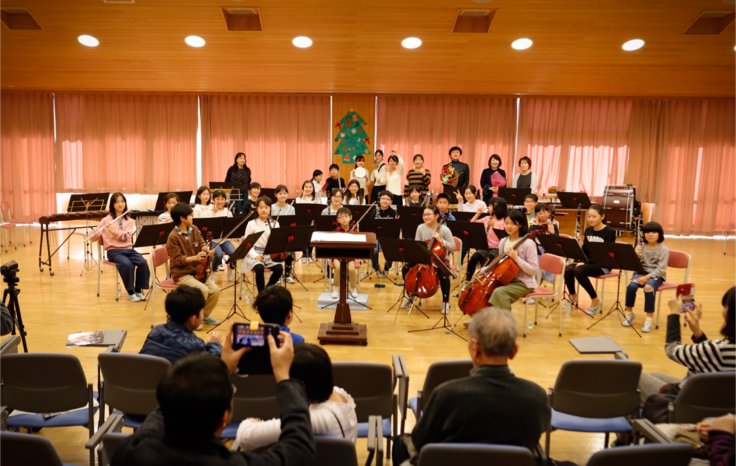 また、地域の老人福祉施設、お祭りなどで、演奏を披露し、街を元気にします。小さなオーケストラが、「音楽の街」を作ろうとしています。
