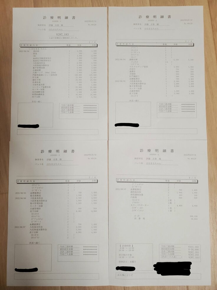 今回の手術費用、門脈シャントの受診・検査・入院費用、嘔吐・下痢(原虫・食物アレルギー)の症状のための受診・検査・入院費用全て合わせて、現在までかかった費用は¥746,873となっております。(※耳掃除、爪切り、校門絞り、歯磨き、避妊手術、乳歯抜歯、マイクロチップ装着を引いた金額です。こちらは支援金を使わず、自己負担致します。)