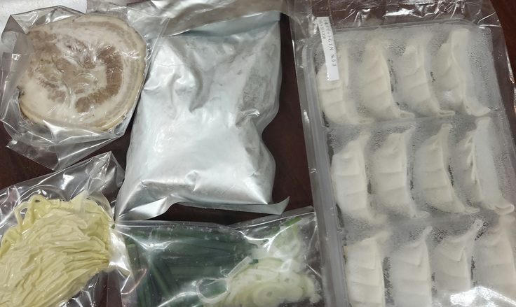 今回のプロジェクトで販売予定の台湾ラーメン3食と餃子1パックをお送り致します。