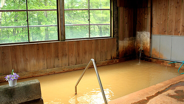 内湯の赤湯は鉄分を含んだお湯で、神経痛やリウマチに効果があり、