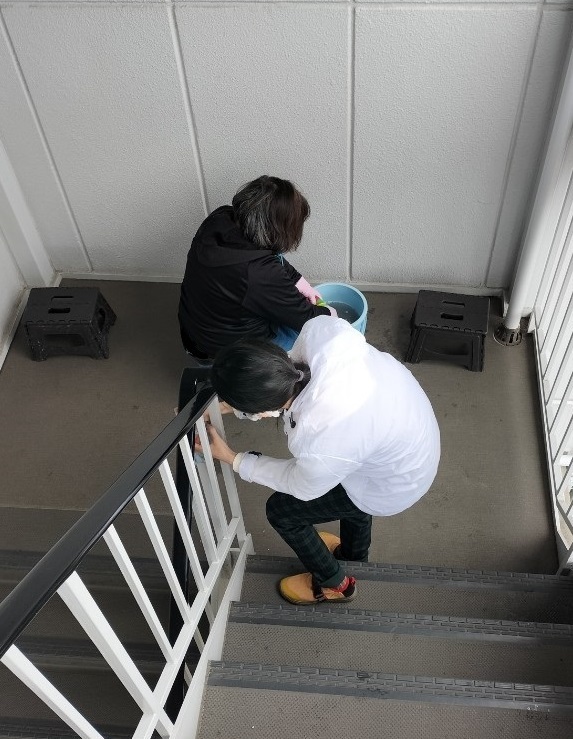 シッポファーレでは自分たちでどんな仕事ができるか話し合いながら、サポートしてくれる専門業者さんと一緒にエアコンやレンジフードの清掃を行っています。