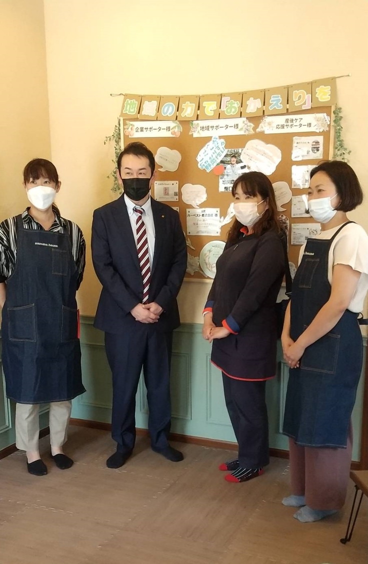 お越しくださったのは、寒川町の子育て支援課と広報戦略課の職員さん、子育て支援センターの職員さん、スポンサー企業さん、議員さんや地域の方々です。院内を見学していただきながらの事業説明や、ランチの試食会などを行いました。
