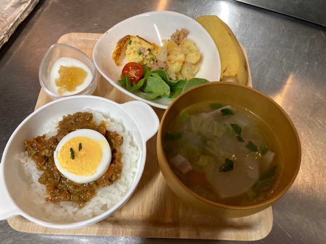 まずは、離乳食や幼児食の提供。ママ達の手から子ども達の小さなお口の中へ。ドキドキしながら様子を見守っていましたが「家では全然食べないのに今日はすごく食べる!」とママ達は大喜び。ドライカレーをおかわりする子もいたりと、地元のとれたてお野菜を子ども達は本当に美味しそうに食べてくれました!