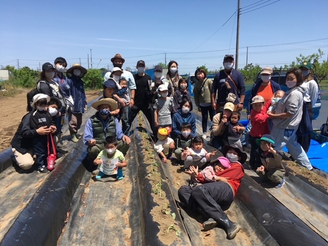 寒川神社の裏にある寒川農園さんの畑で「親子でサツマイモ苗植え体験会」を行いました!ありがたいことに予約はすぐに満席。総勢11組のご家族が参加してくれました。乳児さんから小学生までの子ども達、ママはもちろん、たくさんのパパ達も参加してくれました。学生ボランティアさんも加わり朝から大変賑やか。