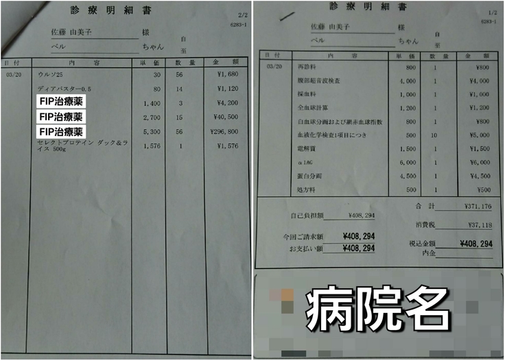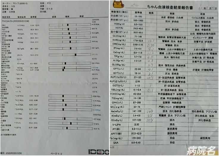 3月20日の検査結果と明細書です。