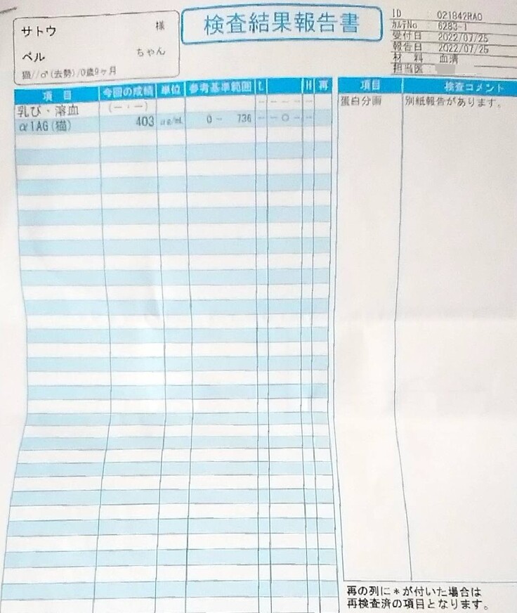 α1AGが前回よりぐんと下がってくれました!