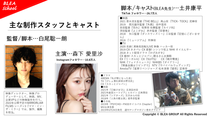 その想いを実現するために「彼女がBLEA学園を卒業する」2022年の春に、ショートフィルムの公開を目指し、我々スタッフも尽力させていただきます。