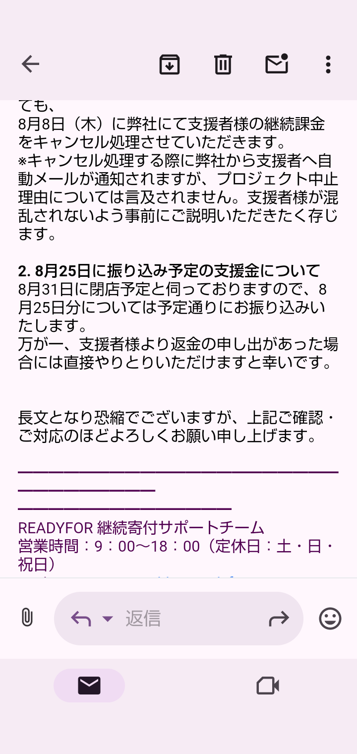 メールが来て 最後のご支援分に関する資金の行方について