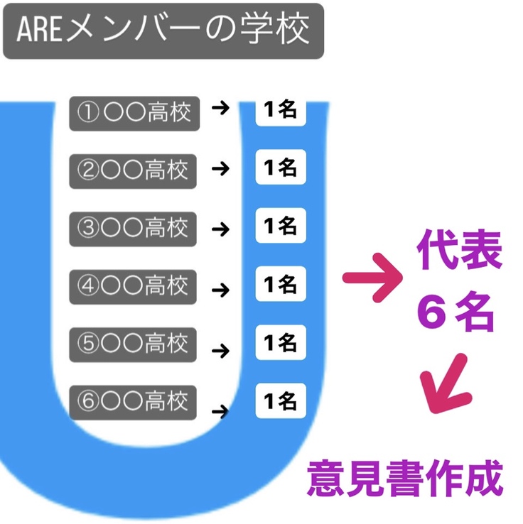 高校で必須となった探究の授業で行うことによりどの学校でもすることができると思います。他にも、海外提携校の無い学校の生徒の無償の留学プログラムや、国際機関で働く人のお話を聞く機会、一般社団法人AREメンバーである学校の代表生徒をそれぞれの学校から選抜し、代表生徒達で平和についての意見書などを作成し、国連などに提出するプログラムなどもしていきたいと考えています。