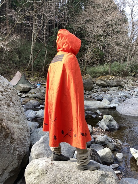 そこで山林に入る際に着用するだけで視認性を確保し、安全に狩猟ができる製品の開発を始めました。そこで衣服生地の高機能化により私たちが忘れかけていた【クローク】というジャンルに再度焦点を当てることで、山林、雪山等で動きやすく、目立ちやすく、さらにお気に入りの服を傷や汚れから守る。 そんなアイテムが誕生いたしました。
