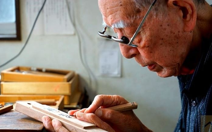 墨の様々な普及活動に取り組む中、有難いことにメディアさんに取り上げて頂くこともしばしばあるのですが、そんな中、とあるメディアさんに出たことがきっかけに、奈良墨や墨木型のことを知り、墨型彫刻師の見習いになりたいという方から連絡を頂きました。クラファン記事にも掲載のあった墨型彫刻師の中村さんに取り次がせて頂き、すぐに弟子入りすることになりました。実は弟子入りされて既に半年経過しているのですが、日々一所懸命、木型制作に取り組まれています。