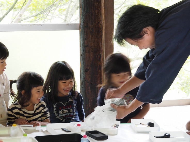 墨の啓蒙普及活動を目的に、全国どこでもこちらから出張費無料で伺い、墨に関する様々な講演や製造実演、墨を使ったワークショップを行う「すみからすみまで墨のおはなし」。