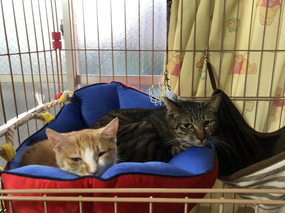 当初は1匹の予定でしたが、フーコを迎え入れたのはゴン太くんが一人でさみしい思いをしているんじゃないか、遊び相手が欲しいんじゃないかと色々考えてゴン太を譲渡していただいた保護団体からフーコを迎え入れました。