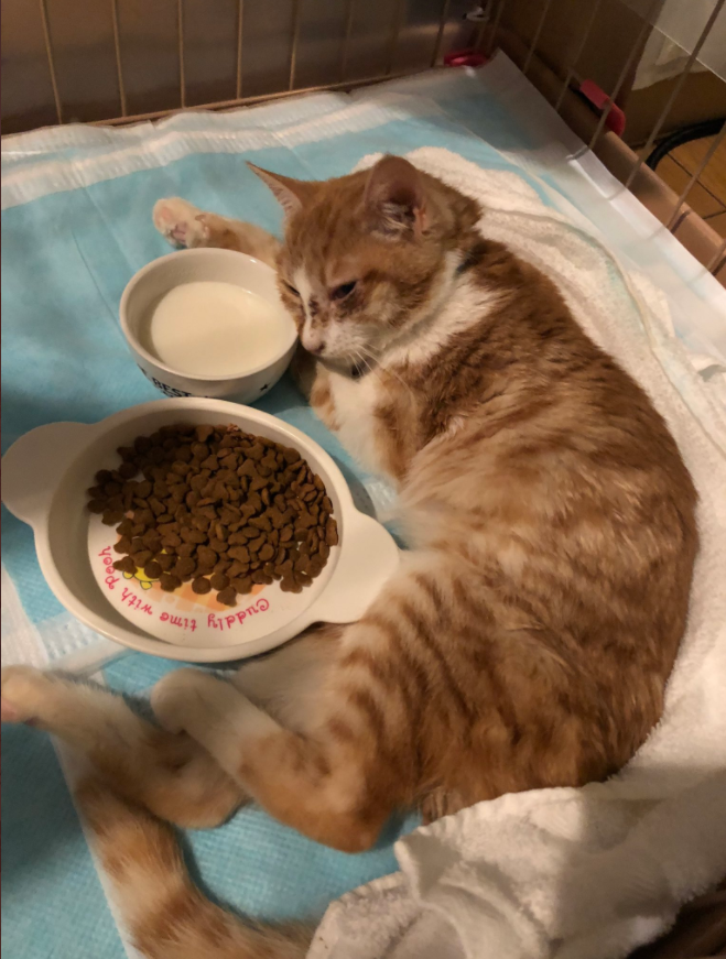 少しずつ頑張ってカリカリ、ミルクを飲んでくれています!