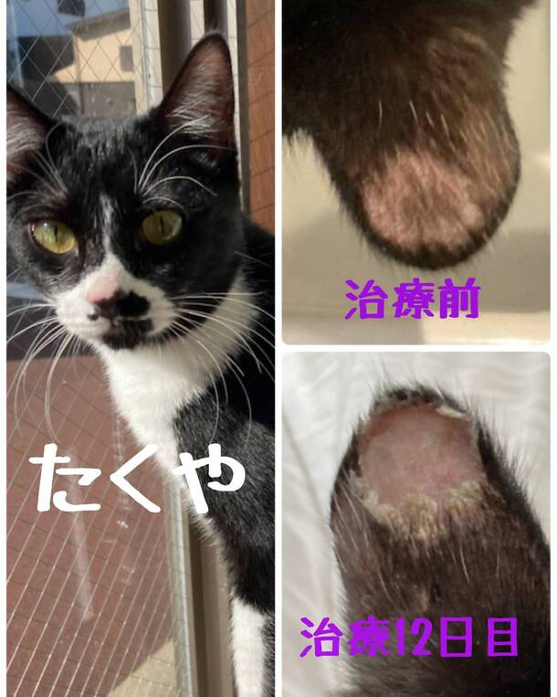 ツルッと丸く脱毛していた部分が、外側からカサブタになってきています。次のシャンプーでペロンと剥がれそうです。