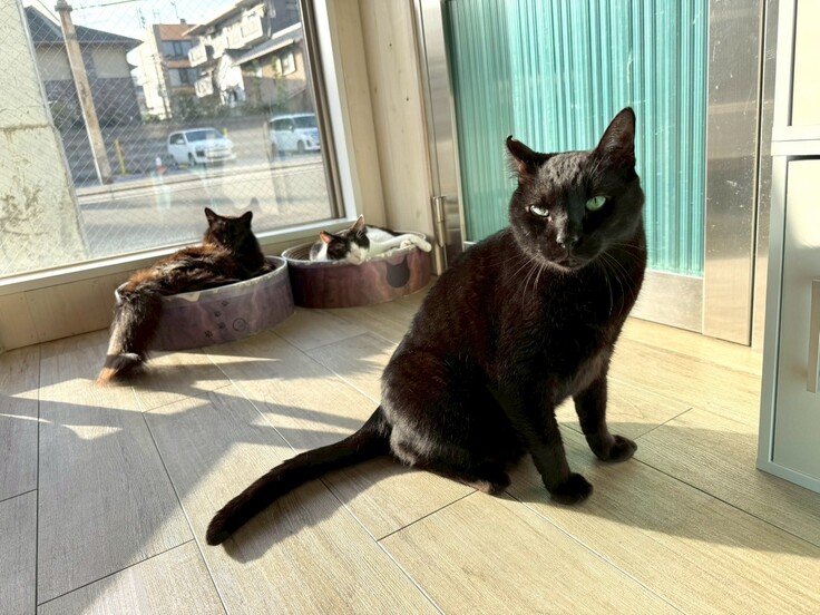『ふわ』『ちぃ』に続いてカフェデビューしました。この3頭は、同出身猫ちゃんたちです。