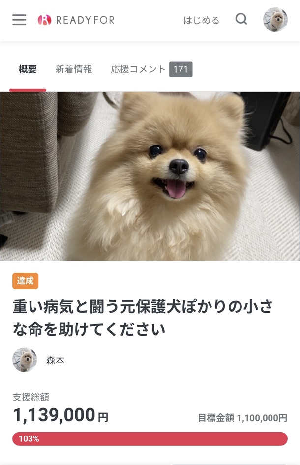 これでぽかりに手術を受けさせてあげる事ができます。心からお礼申し上げます。