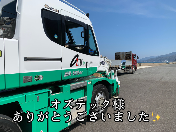 今回の作業は、防波堤の関係で回収したごみをクレーン車で引き上げる作業が必須でしたが、オズテック㈱様の御厚意によりその作業を無償で引き受けて頂きました。