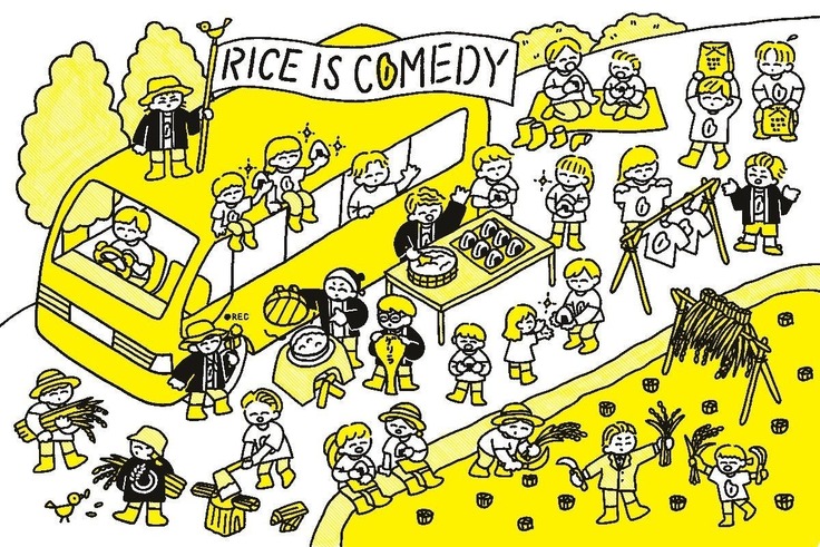 地元である滋賀県長浜市の農業、特に米作りに関する問題に直面した地元出身の20~30代のメンバーが集まり、『Rice is comedy(米づくりは喜劇だ)』をコンセプトに掲げ、1000%楽しみながら米づくりを行う団体です。 町中に突然現れて、羽釜でお米を薪で炊いておにぎりを振る舞うイベント「ゲリラ炊飯」や稲に映画を観せて育て監督に届ける「映画米プロジェクト」など、米作りを通して世界中の農家に農業の面白さ・楽しさを届け、これまでの農業の価値観を変えるために活動しています。 www.instagram.com/rice_is_comedy/ riceiscomedy.stores.jp/
