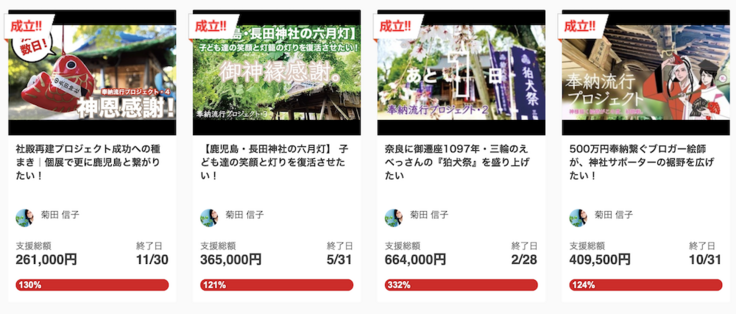 元々は神社紹介ブログの企画で神社様への寄付活動を開始し、3年半で500万円を超す奉納のお手伝いをさせていただいており、昨年秋からはこのREADYFORさんにて、プロジェクトも開始するようになりました。