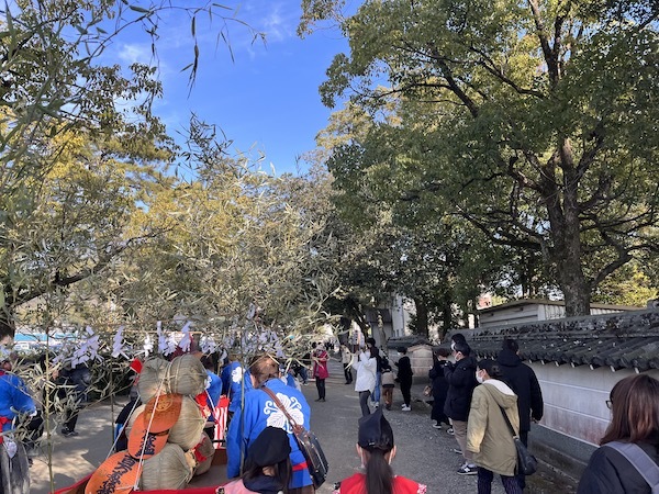 これまでの『鯛引き行列』は掛け声なども特になく、どちらかというと淡々としたお練りでした。でも今年は太鼓に掛け声に笛にと、とにかく賑やかで華やかで一体感のあるお練りとなり、終わった後で宮司様にはたくさんの「すごかったね」という言葉が届いたそうです。