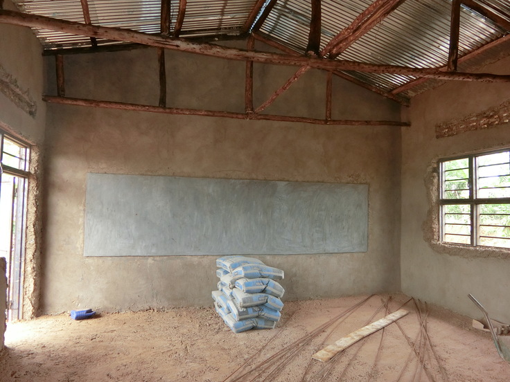 The classroom will be completed by installing windows and doors, creating a floor and blackboard, and creating a passage in front of the classroom.