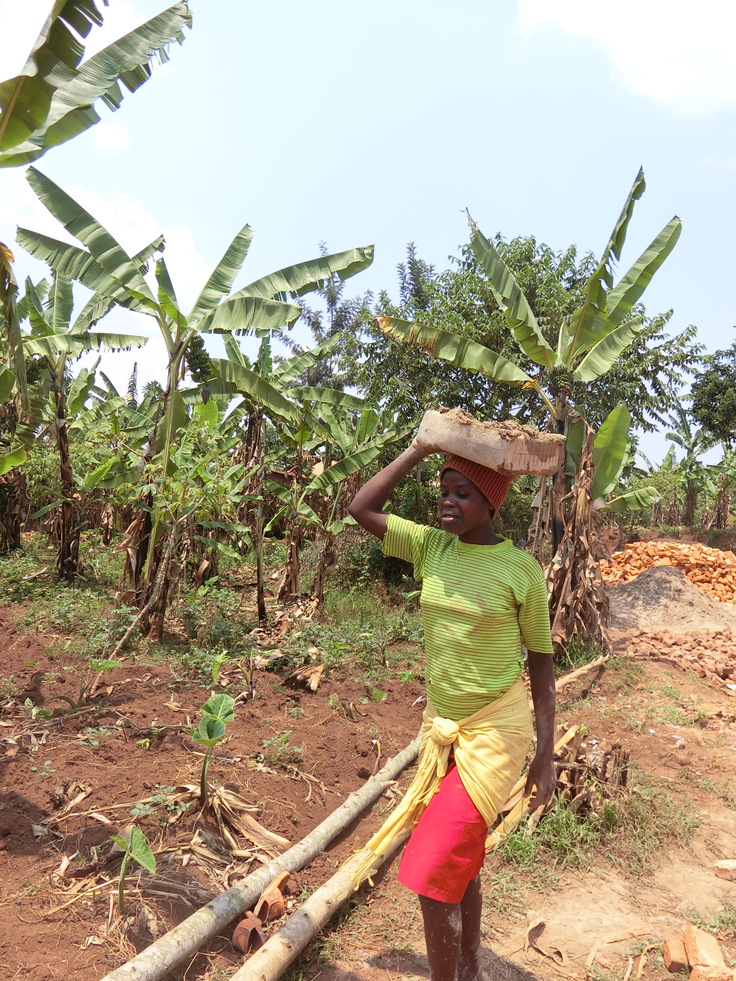 (左)この日、唯一の女性として煉瓦運びをするスタッフ。(中央)シャイで寡黙に働くスタッフ。(右)校舎前の通りで見かけた女の子。何も言わずに微笑み続ける姿がとても可愛かった。