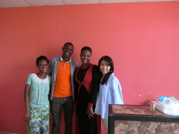 左から、教師歴10年のPatricia (パトリシアさん)、カウンターパートのPatrick(パトリック)、教師歴6年のEsther (エスターさん)、私。