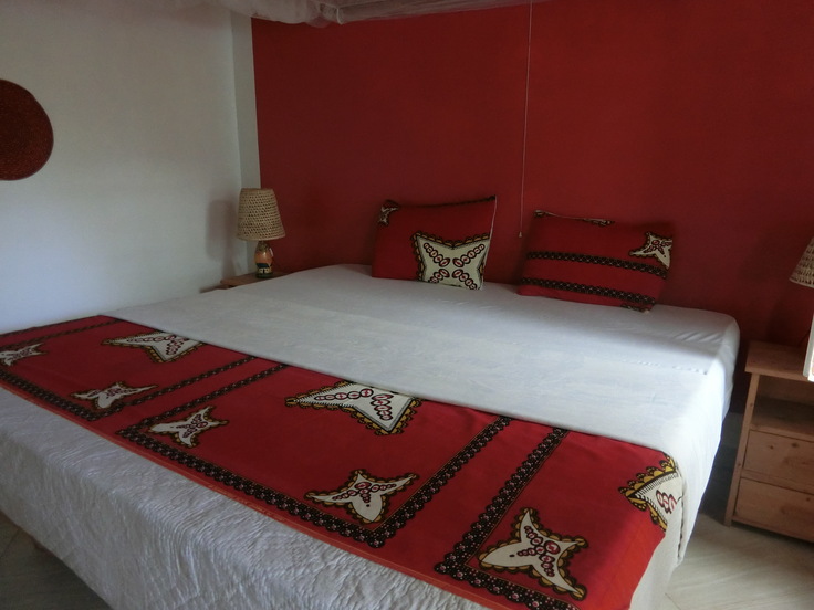 (左)ルワンダ人の知人がおススメする3ツ星ロッジ「Te Hose Guest House」。(右)Tea Houseの客室はアフリカ生地を使っていて可愛い。