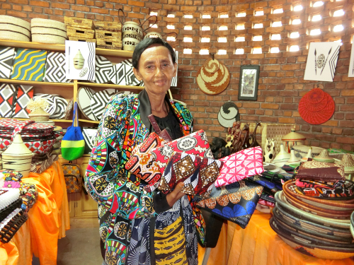 10/27 リターン品のチテンゲポーチとバッグを受け取りに、隊員時代の任地カヨンザにある「Women's Opportunity Center」へ行ってきました!海外のお客様も多い人気ショップで、伝統品が多数陳列されています。アイテムは一つ一つ手作業で作られていて、どれもオンリーワンなのです。