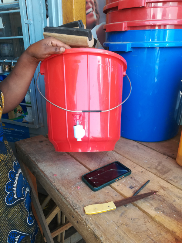 10/14 生徒の手洗い用バケツを購入しに、近くの町(ルワマガナ)へ行ってきました!店主が、蓋つきバケツにキリで穴を開け、タブを取り付けてくださいました。生徒の中には、受け皿に溜まった使用済みの水で手洗いをしようとする子がいて、まだまだ指導は必要ですが、皆、楽しんで手洗いするようになってきました!