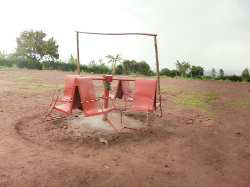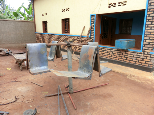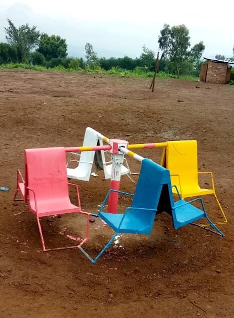 開校直後から「遊具が他にもあればいい。いつも子ども達がブランコの取り合いをしている」との声を先生から聞いており、すぐにでも大人数の子どもが一度に乗れる遊具を設置したいね、とオーナーと話していました。ご支援金の優先順位では、常に後回しになってしまっていた遊具でしたが、11月に高校時代の友人が支援してくれたことをきっかけに、彼女の支援金と実行者の自弁で製作することにしました。11/16に開始したブランコ製作、その時にはまだ電気が開通していなかった為、近所のお宅の庭と電気をお借りして製作をスタートさせました。11/18には本体が完成し、校庭に移動させ、残りは塗装のみという状態にまで仕上がりました。つい先日、オーナーより「4色のカラフルな回転ブランコが完成した」との連絡と写真が届き、子ども達が喧嘩せずに遊べる環境が整ったことを知りました。私の急き立てにも、終始穏やかに対応してくれた製作スタッフとオーナーに感謝です!