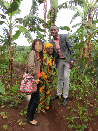 (左)スポンサーチャイルドの母親を中心に撮影(中央)お宅までの”道なき道”。母親が先で私達を待っているが・・(右)泥濘の為、途中で断念。。そこで一枚。※ノーメイクの為、モザイク加工しています