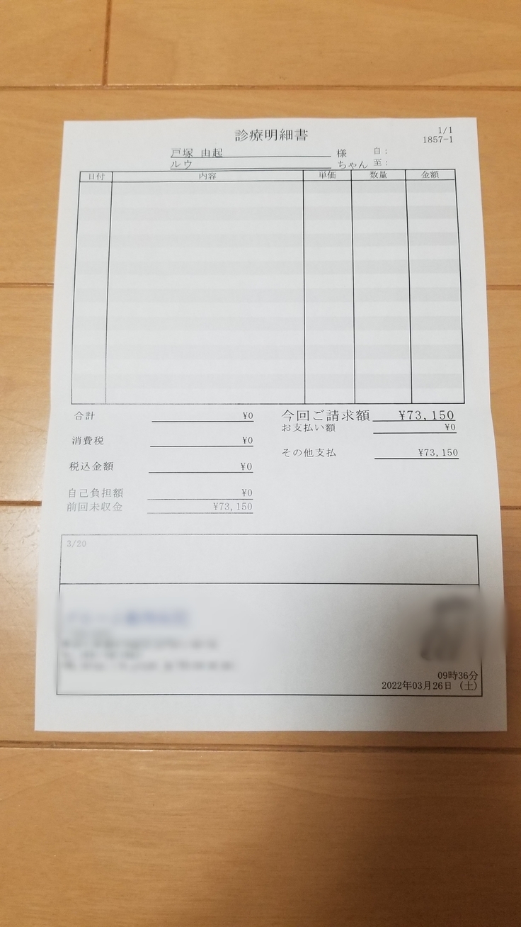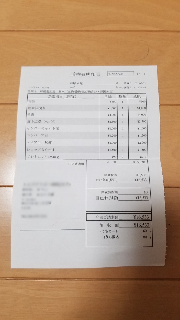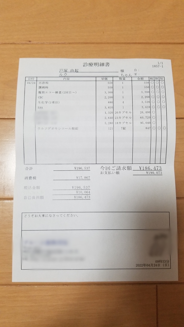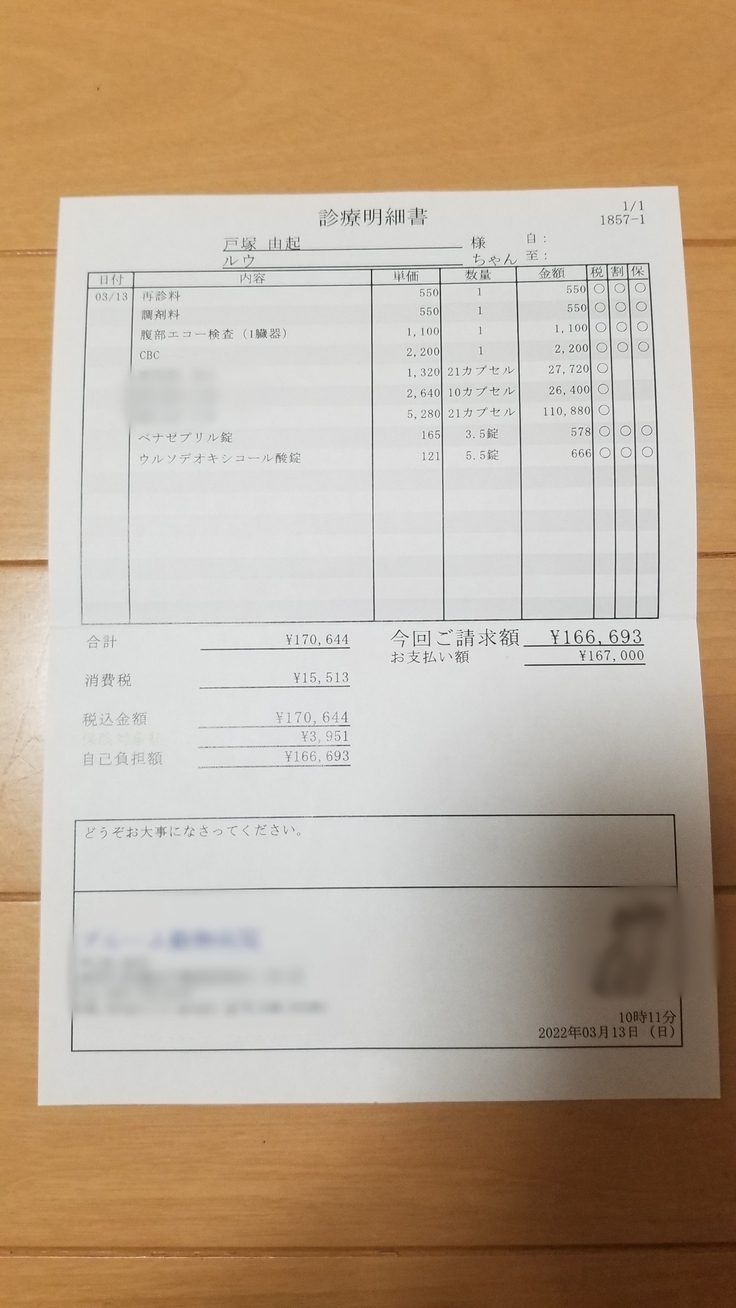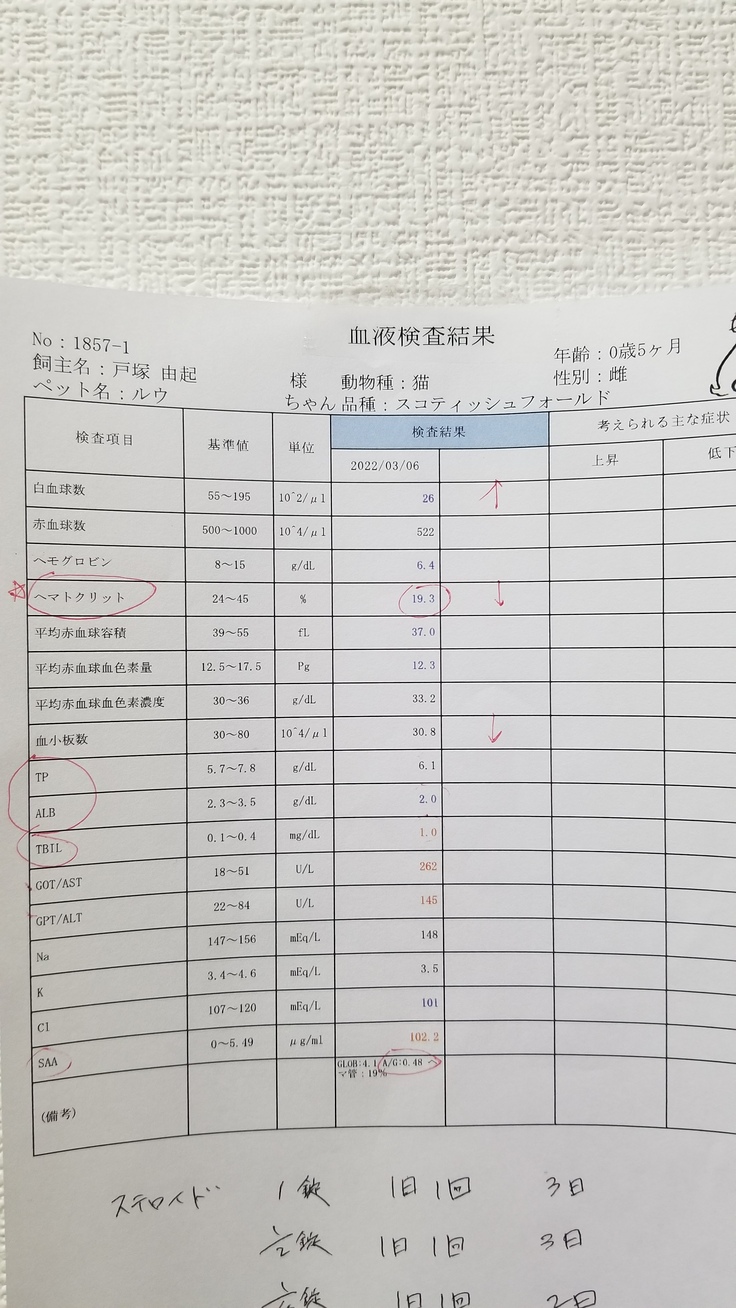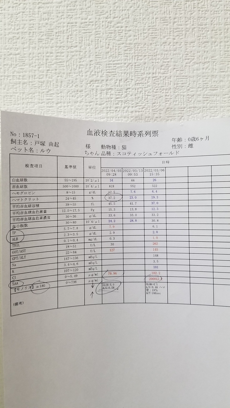 動物病院での、経過観察、血液検査