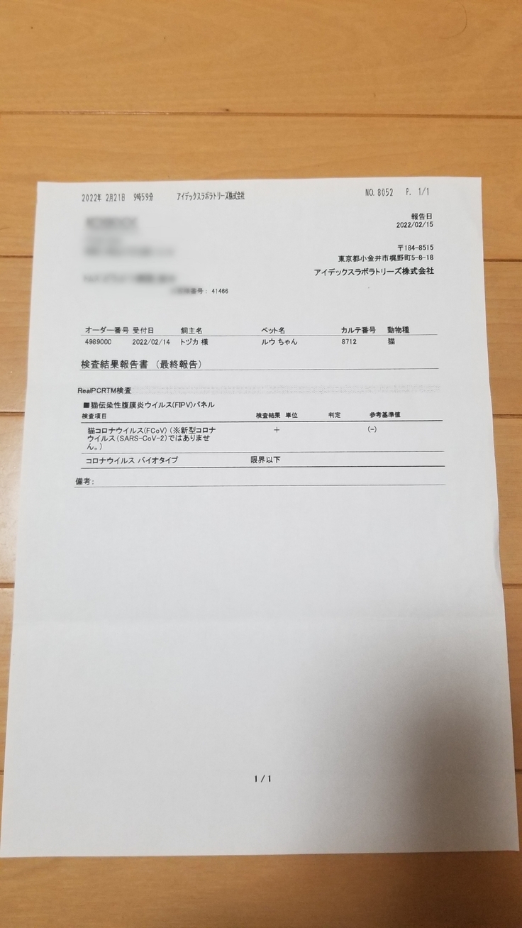 そして、FIP(猫伝染性腹膜炎)