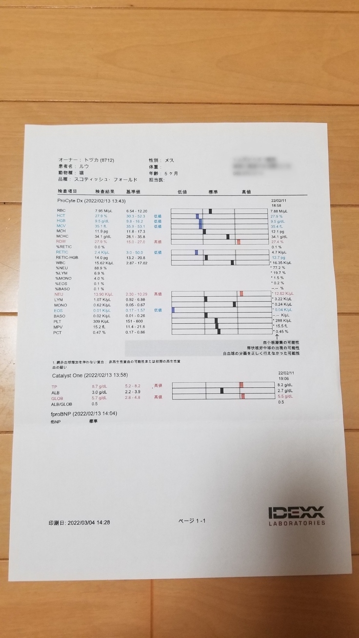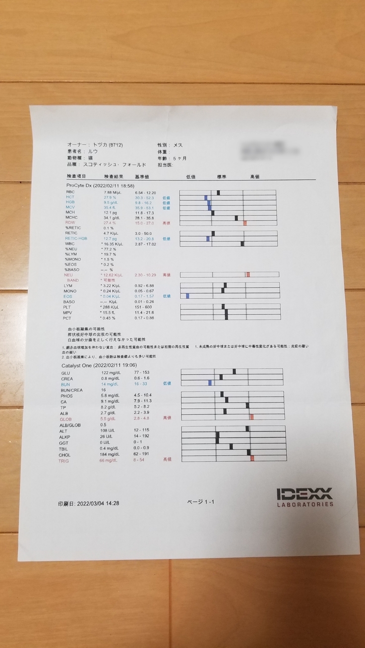 血液検査の結果