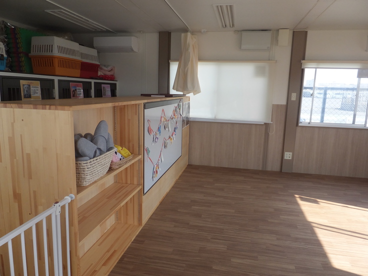 ここではセラピードッグたちが生活する犬舎と、ふれあいスペースを設けています。いつでも気軽に遊びに来て頂ける来場型のドッグセラピーを実施できるようになりました。