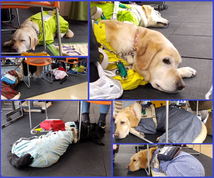 皆様のご支援は、働いている盲導犬とそのユーザーが安全に安心して歩行するためのサポートにも役立ってています。これからも引き続きのご支援と応援どうぞよろしくお願いします。写真は、会議時の犬たちの様子です。